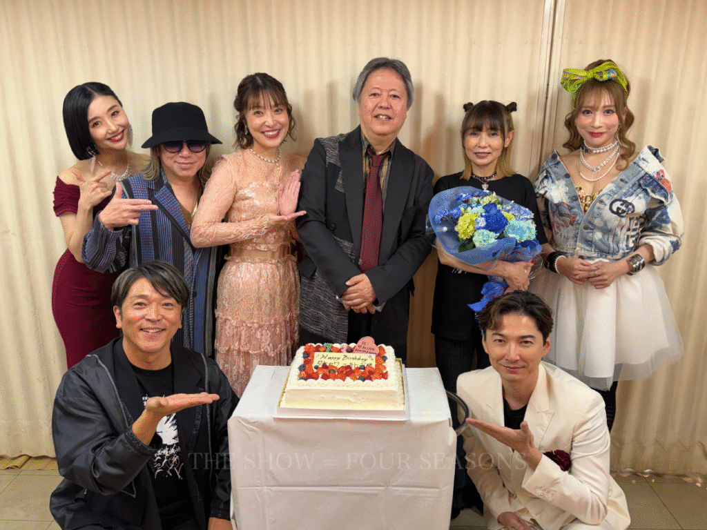 楽屋裏での豪華出演者の集合写真&タケカワユキヒデさんのステージ上でのサプライズケーキ映像を公開中‼︎ 2025 10/23 2025-10-23 タケカワユキヒデさん他、出演者は本日、7日目で公演の最終ステージを迎えました。 素晴らしいパフォーマンスをありがとうございました! 祝!昭和 100年 THE SHOW = FOUR SEASONSザ・ショーワ フォーシーズンズ 目次タケカワユキヒデさんのステージ上でのサプライズ誕生日ケーキ映像を公開! 祝!昭和 100年 THE SHOW = FOUR SEASONSザ・ショーワ フォーシーズンズ お知らせ 新着情報